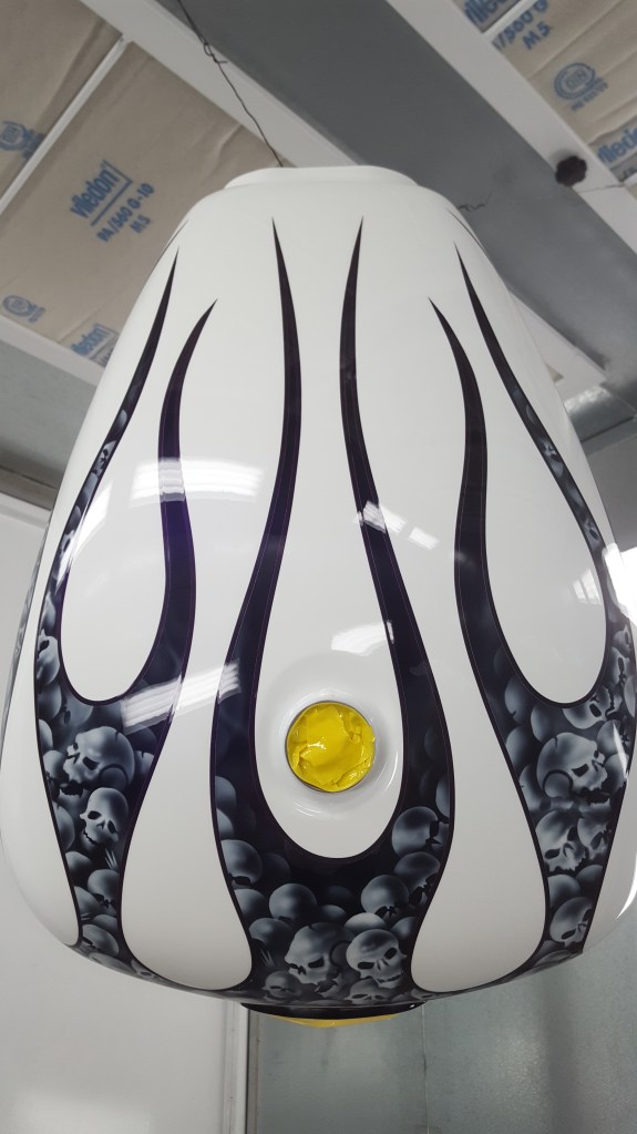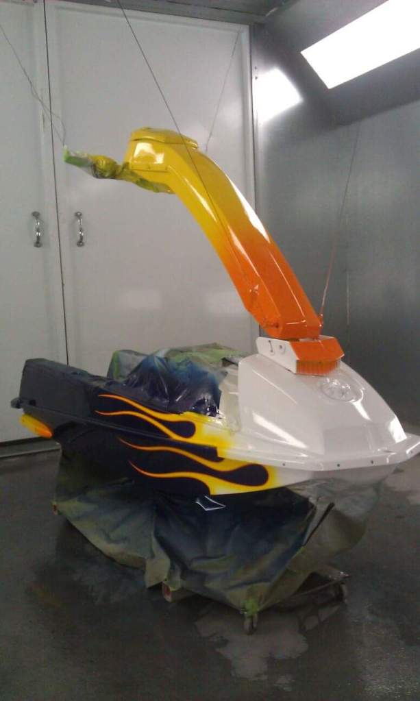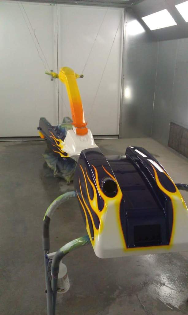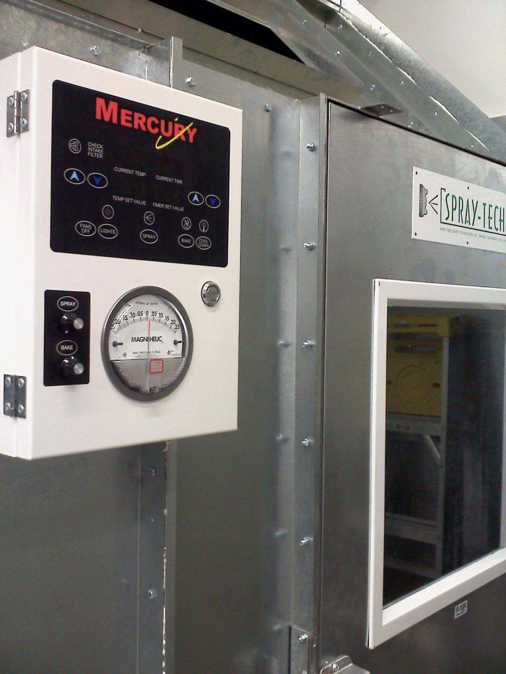 Our facility has a Spray Tech side down draft paint booth, 14 feet wide by 24 feet long with adjustable 24 inch dual Dayton tubeaxial fans and a one million BTU propane fired furnace to paint at any temperature. If necessary it can bake a paint job at 140 degrees when it is 20 below…